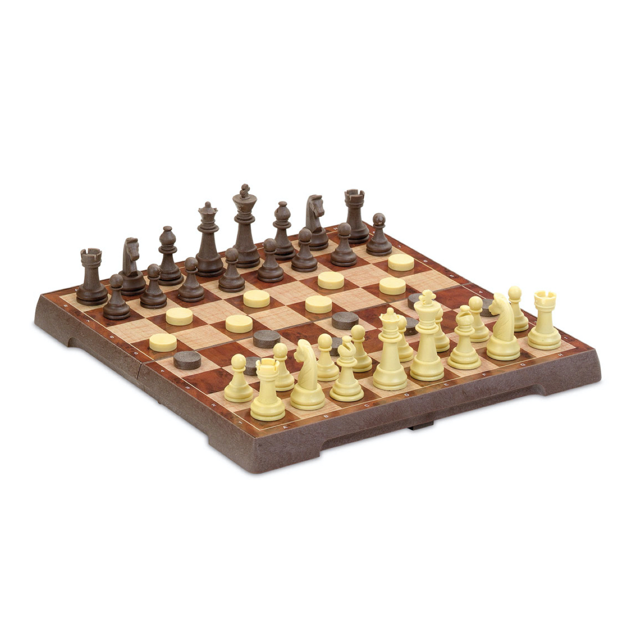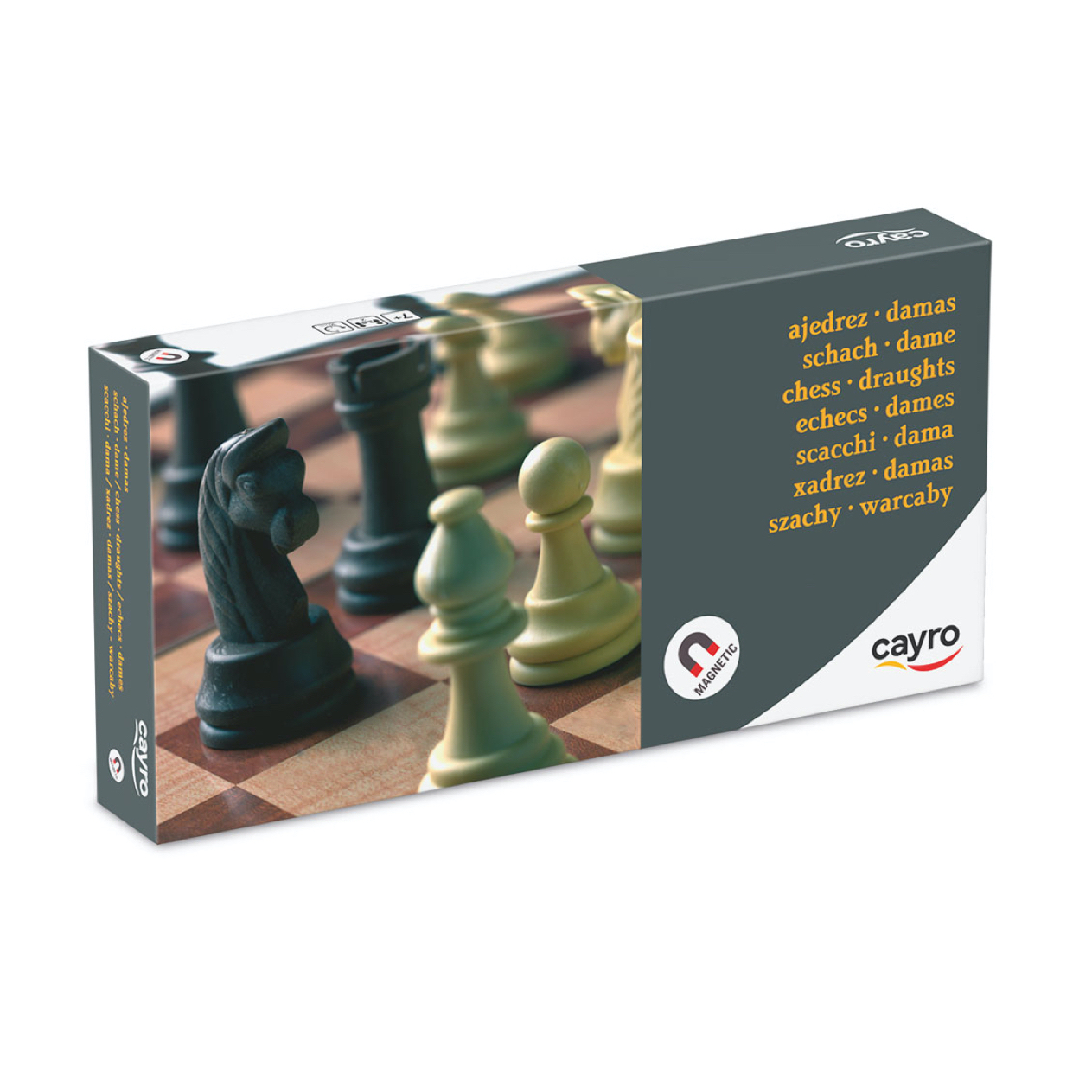 Ajedrez y Damas Magnético Mediano – Cayro es un práctico juego de mesa que reúne dos clásicos de estrategia en un solo tablero: el ajedrez y las damas. Una opción ideal para disfrutar de partidas desafiantes tanto en casa como durante viajes o desplazamientos.