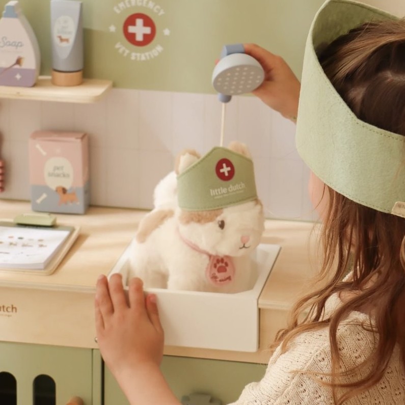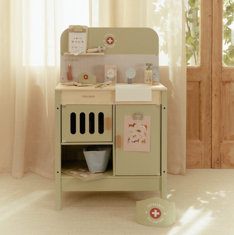 Gracias a su diseño realista y a sus múltiples accesorios, la Clínica Veterinaria de Madera – Little Dutch estimula la coordinación ojo-mano, la motricidad fina y la creatividad, a la vez que fomenta valores como el cuidado, la empatía y la cooperación.