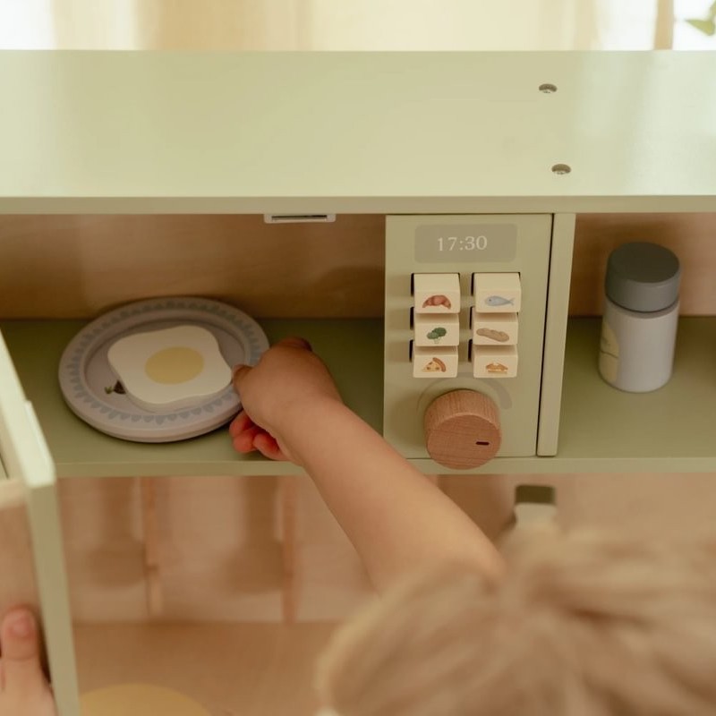 La Cocina Menta FSC – Little Dutch es mucho más que un juguete: es una invitación a crear historias, a descubrir el mundo a través del juego y a desarrollar habilidades esenciales para la vida cotidiana.