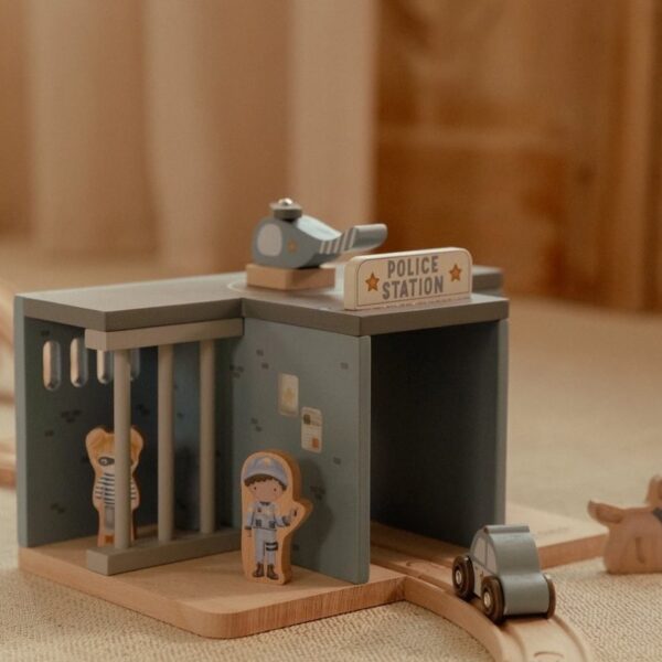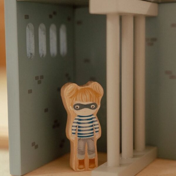 ¡Ladrón descubierto! La Comisaría de Policía – Little Dutch ofrece a los pequeños la oportunidad de vivir emocionantes aventuras mientras mantienen la ciudad segura. Este completo set de madera FSC® invita a los niños a recrear historias llenas de acción, justicia y trabajo en equipo, fomentando el juego simbólico y la imaginación.