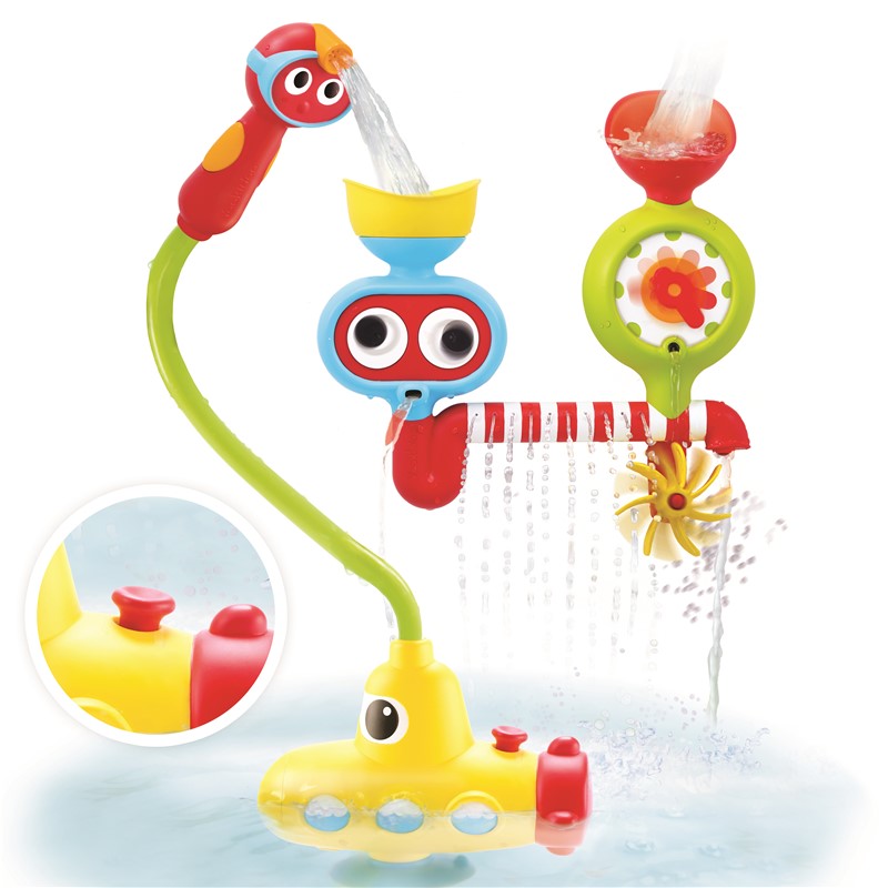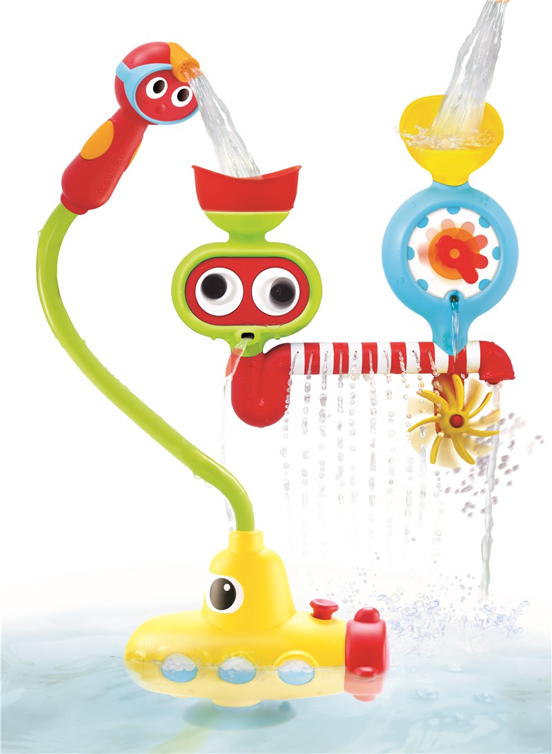El innovador juguete de baño Estación de Spray Submarino Yookidoo incorpora un sistema exclusivo de bombeo operado por pilas que transporta el agua a través del submarino hasta el cabezal de ducha, creando una experiencia de baño interactiva, educativa y sostenible.