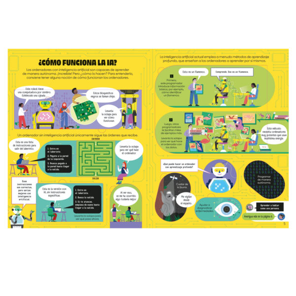 Gracias a su lenguaje claro y sus ilustraciones llenas de color, el libro La inteligencia artificial – Usborne es una excelente forma de introducir el pensamiento crítico y la educación digital en los más pequeños, ayudándolos a comprender mejor el mundo que los rodea.