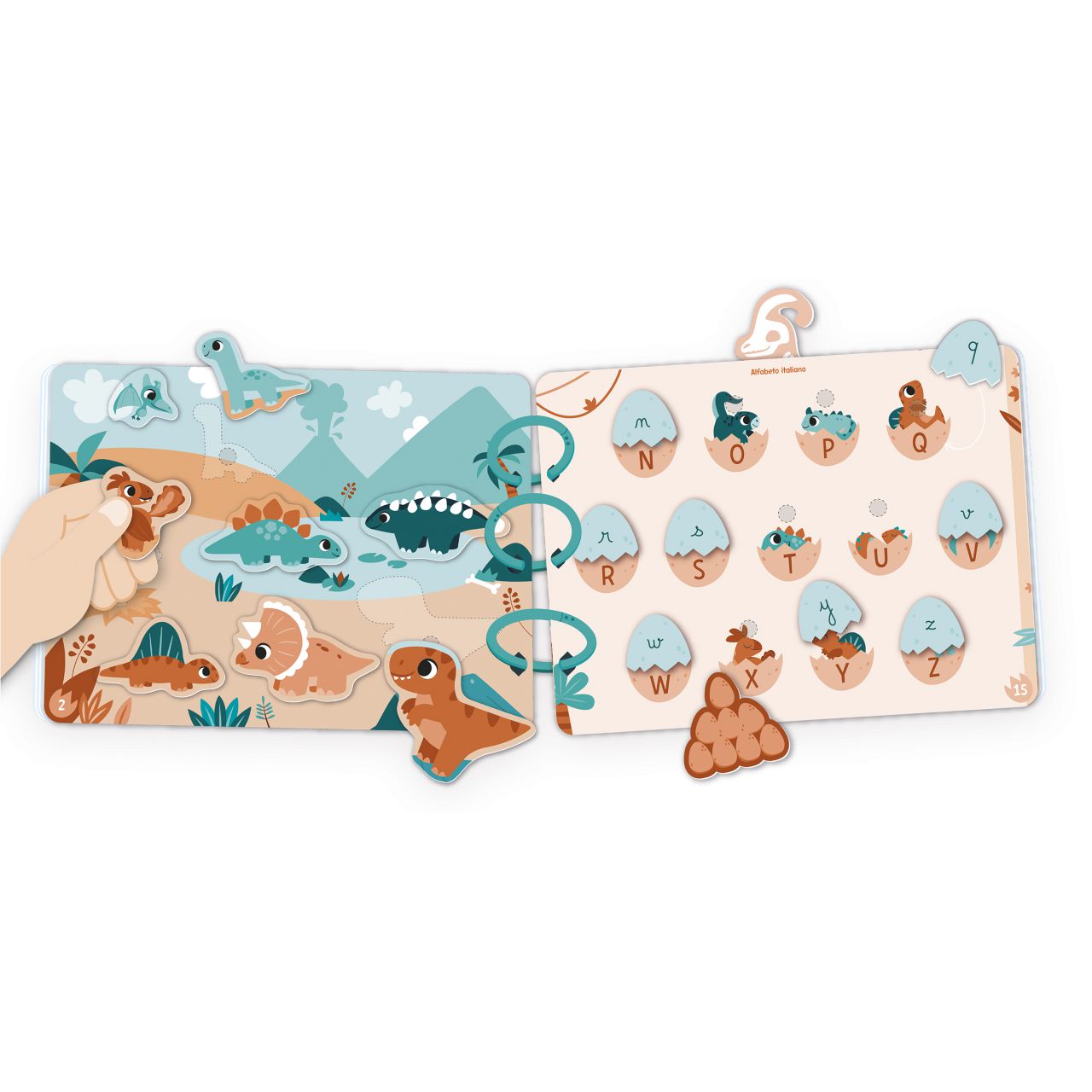 El Libro de Actividades Busy Book Dino – Janod incluye un total de 149 piezas para colocar, lo que permite desarrollar la motricidad fina y la coordinación mientras juegan. Además, los niños más mayores podrán iniciarse en el aprendizaje de números y del alfabeto, tanto en mayúsculas como en minúsculas.