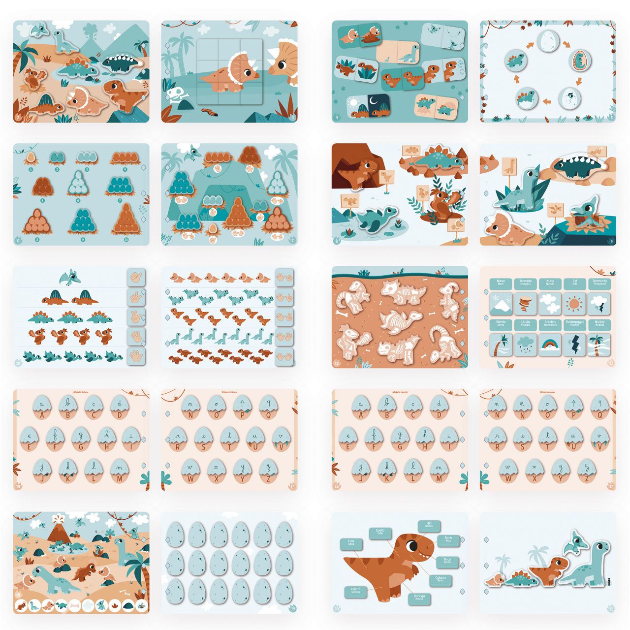 A lo largo del libro, los niños conocerán diferentes especies como el T-Rex, Triceratops, Diplodocus o Pterodáctilo, aprendiendo sobre su entorno, tamaño y características. Cada página propone actividades que fomentan la manipulación, la observación y el lenguaje, convirtiendo el aprendizaje en una experiencia dinámica.