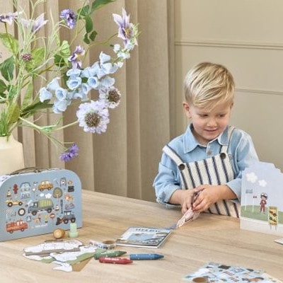 Gracias a su diseño compacto y resistente, la Maleta de Creatividad Jim Vehículos – Little Dutch es perfecta para llevar de viaje, utilizar en casa o disfrutar en cualquier momento de ocio. Mantiene todos los materiales organizados y listos para usar, favoreciendo el juego autónomo.
