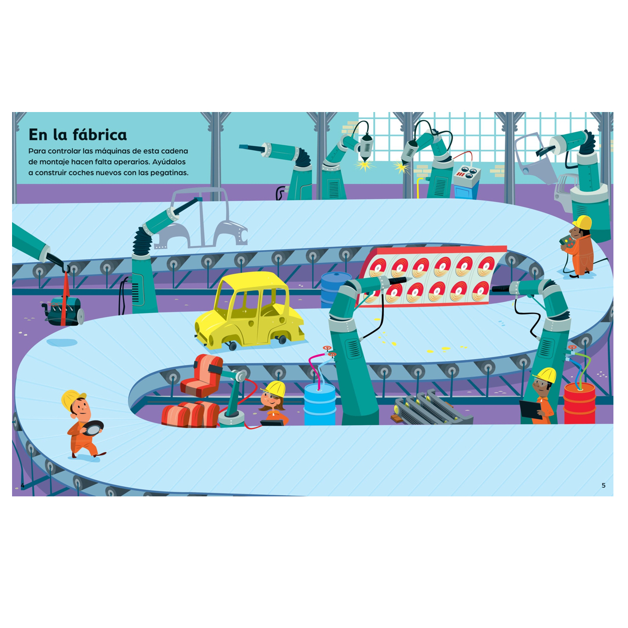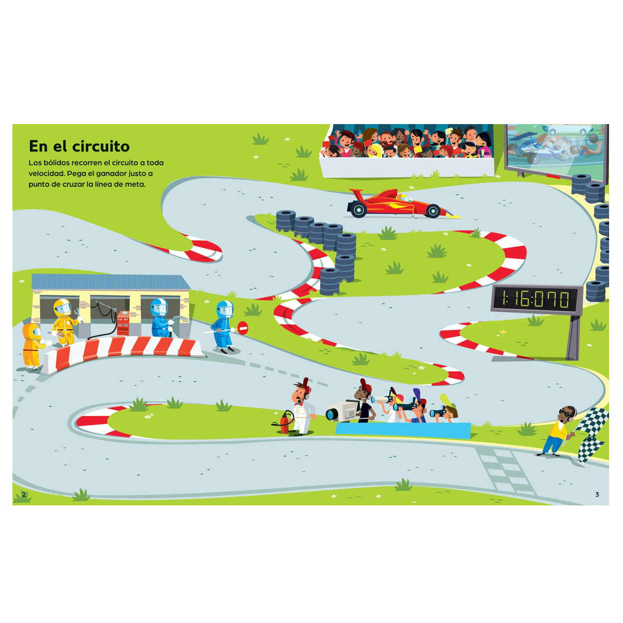 A lo largo de sus páginas, deberán añadir decenas de pegatinas en escenarios como un circuito de carreras, una ciudad bulliciosa o una fábrica de coches, dando vida a cada ilustración con su propia creatividad. Además, el libro incluye una página especial dedicada a la historia del automóvil, donde se muestran distintos modelos a lo largo del tiempo, aportando un componente educativo adicional.