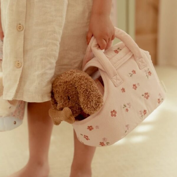 Perrito Peluche Jackie con Bolsa – Little Dutch es un simpático y tierno perrito que llega acompañado de una preciosa bolsa de transporte con estampado floral. Su tacto suave y agradable y su dulce expresión lo convierten en el compañero perfecto para juegos, aventuras y momentos de cariño.