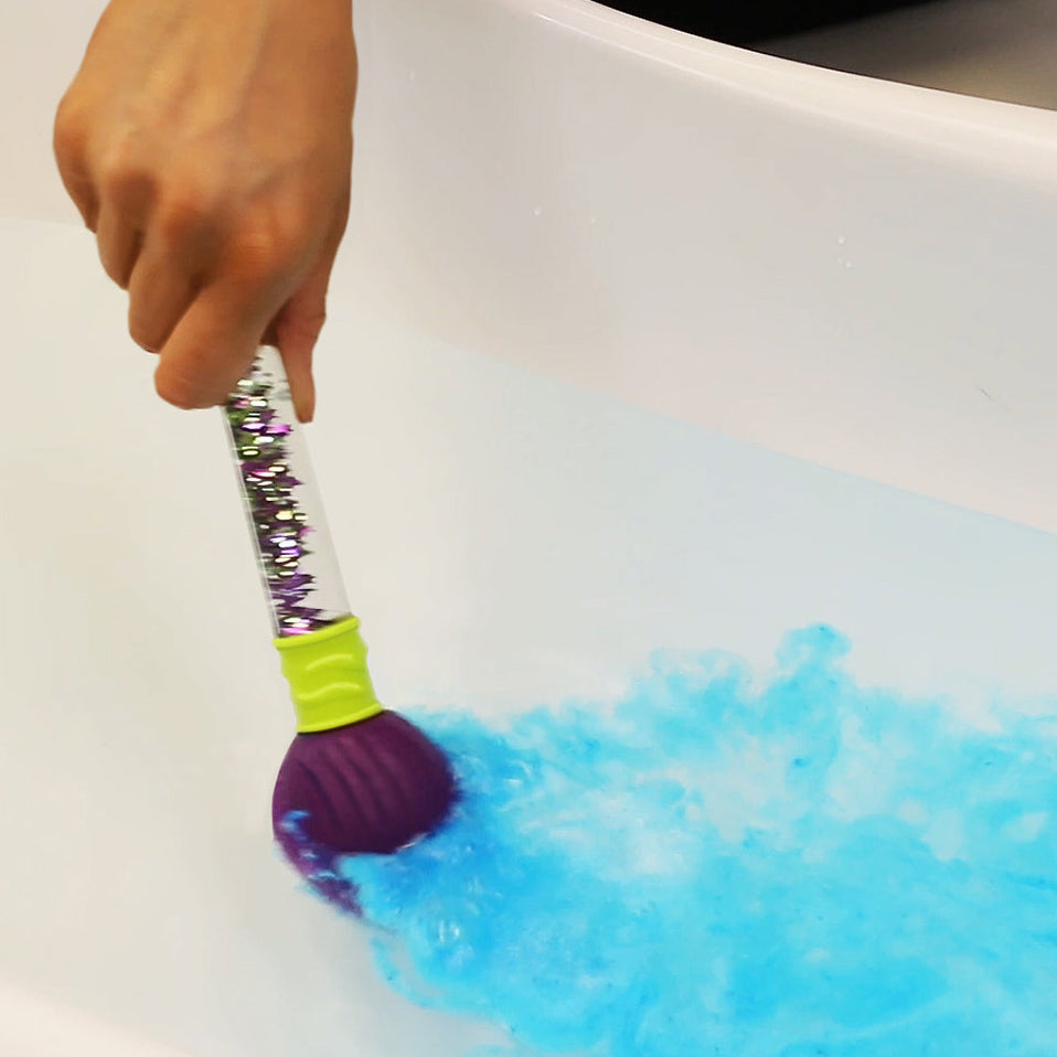 Con el pincel Magic Paint, solo hay que añadir las bombas de baño de colores y dejar que la magia suceda: al contacto con el agua, las bombas se disuelven creando efectos visuales divertidos que permiten pintar patrones y formas en el agua de la bañera. Una propuesta original que estimula la imaginación y convierte la rutina diaria en un momento especial.