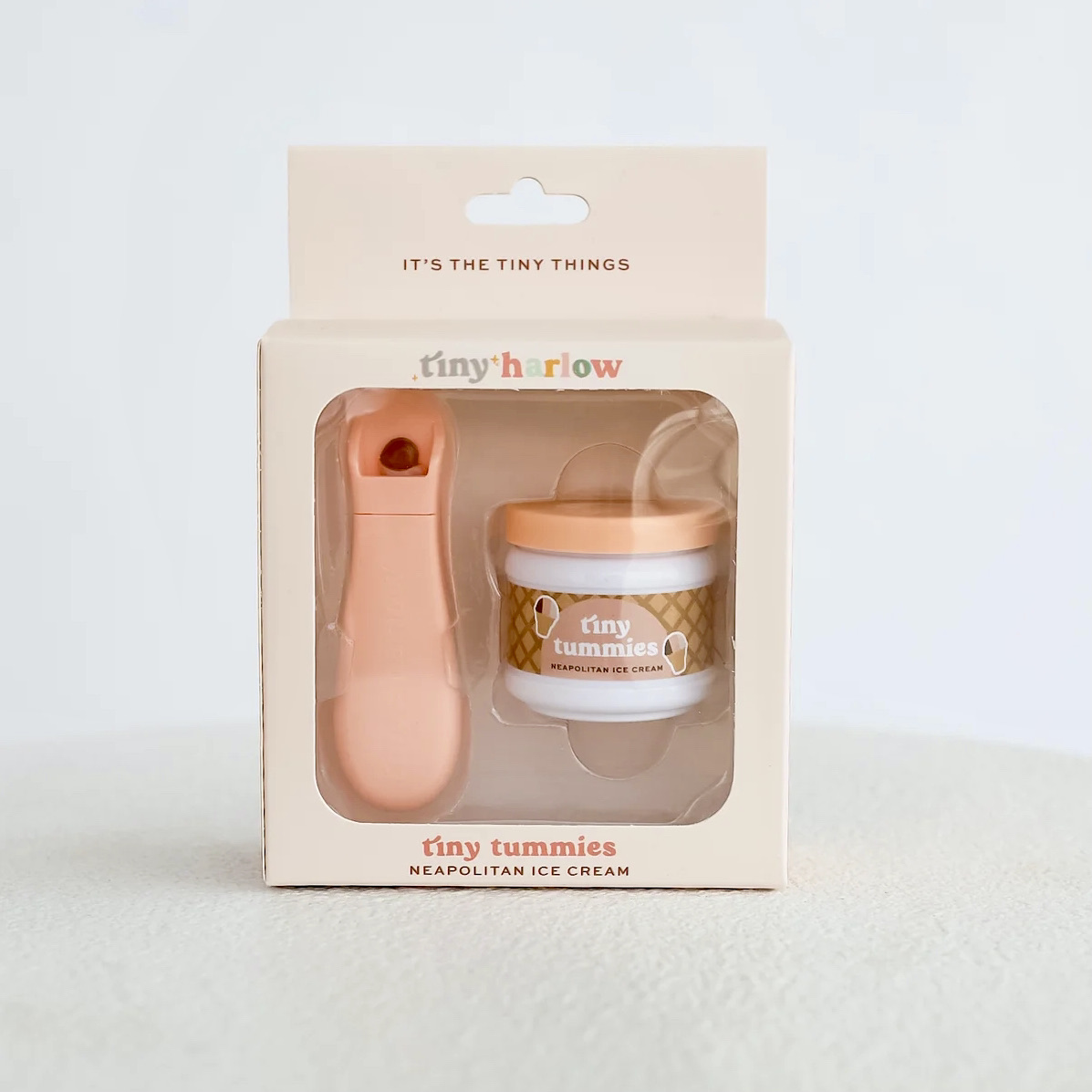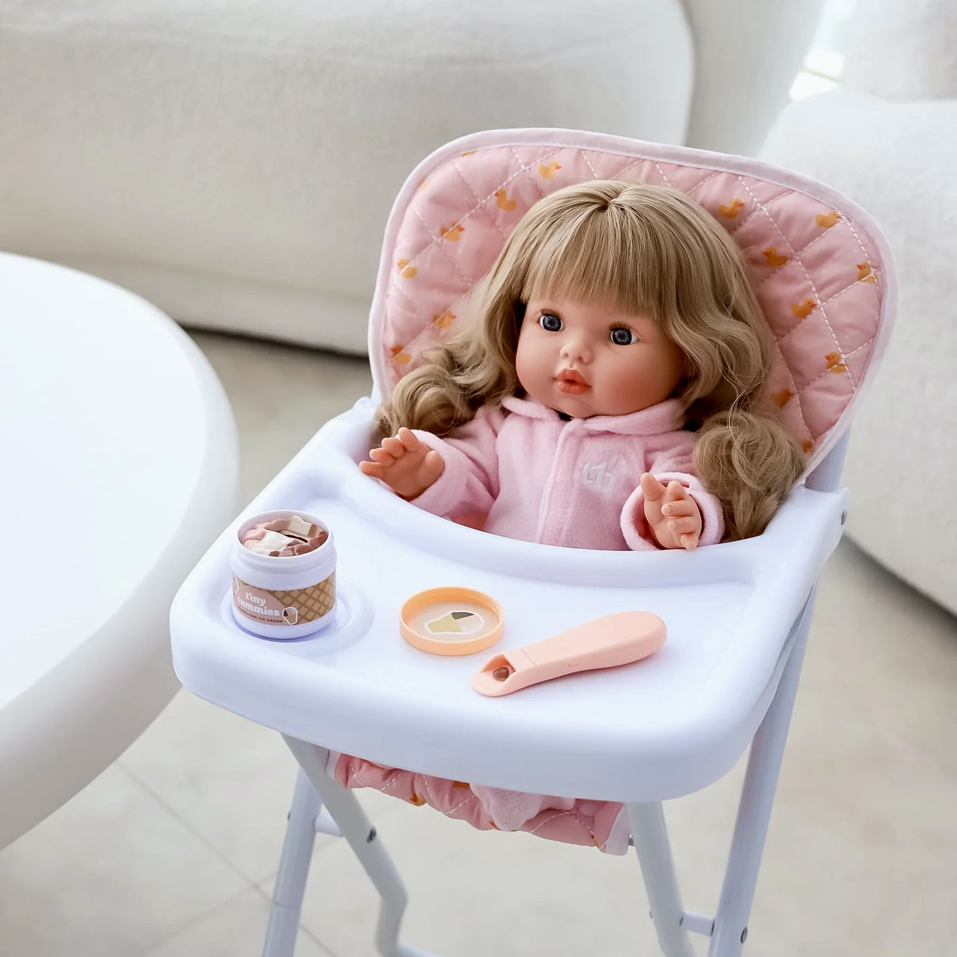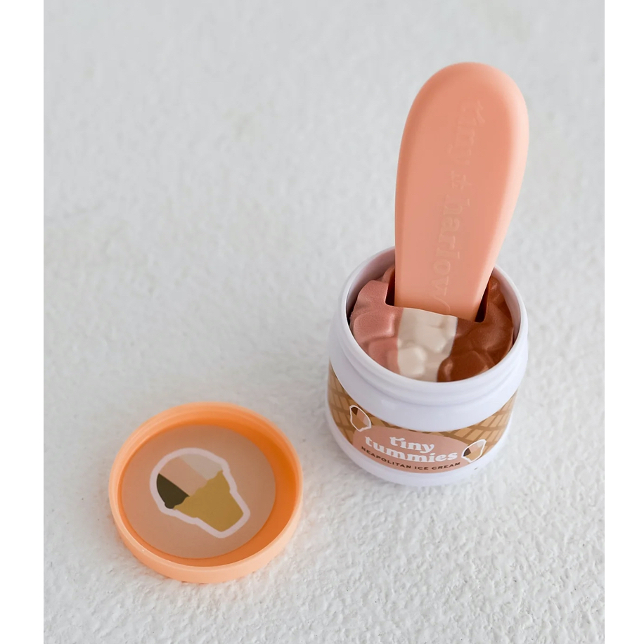 Este set pertenece a la reconocida colección Tiny Tummies, especializada en accesorios de alimentación mágica para muñecas. Gracias a su innovador sistema, los niños pueden simular de forma sorprendentemente realista el acto de dar de comer. Basta con introducir la cuchara mágica en el tarrito para que el “helado” aparezca sobre ella; al acercarla a la boca de la muñeca, el contenido desaparece como por arte de magia, creando la ilusión de que la muñeca realmente ha comido.